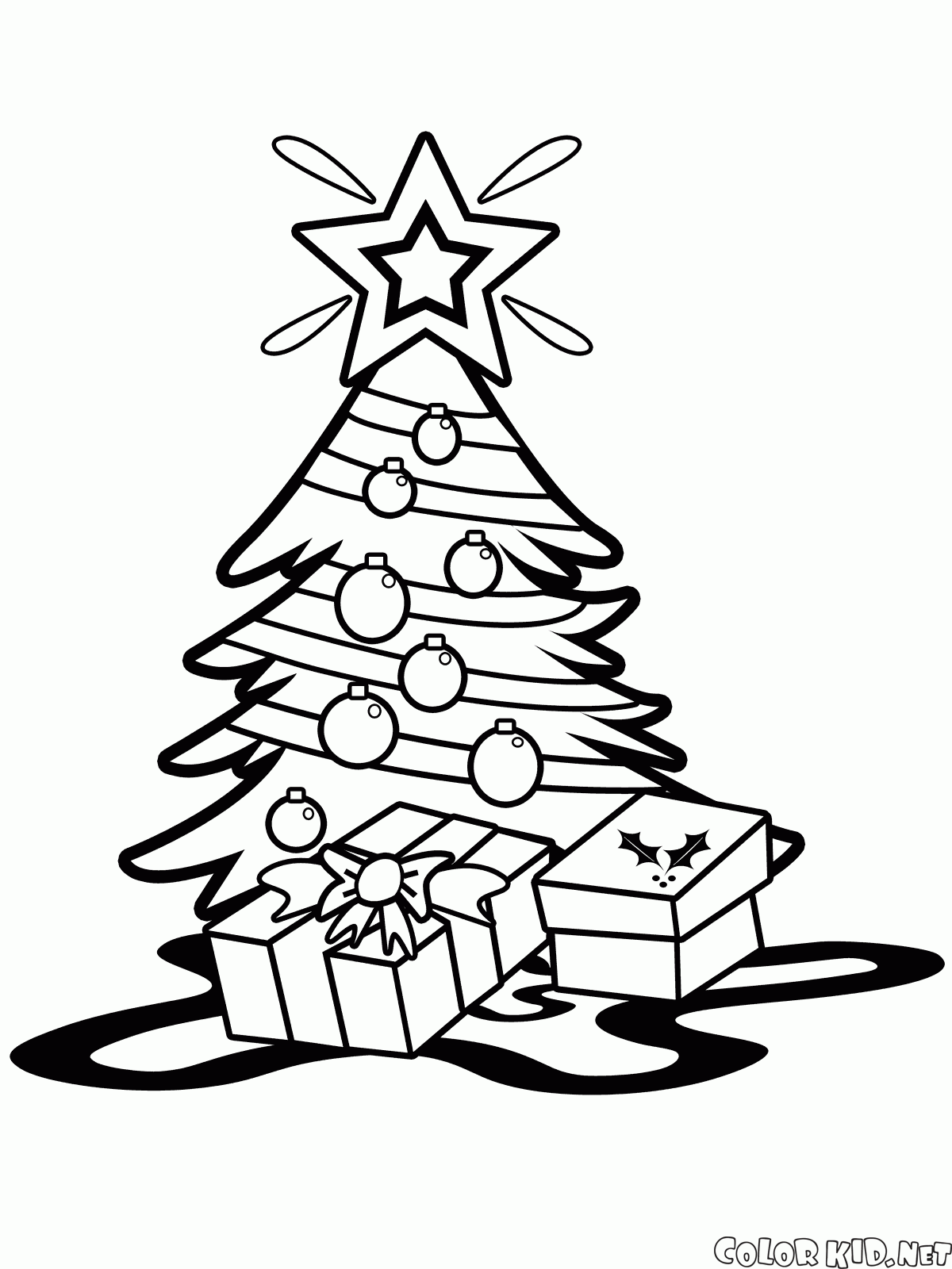 ぬりえ - スターとクリスマスツリー