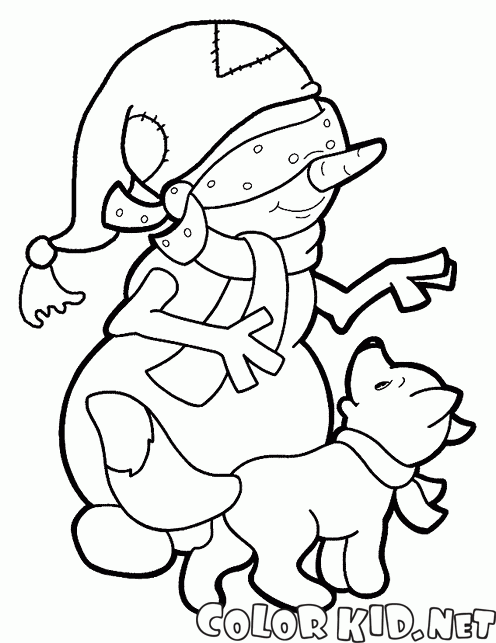 ぬりえ - 雪だるまと犬