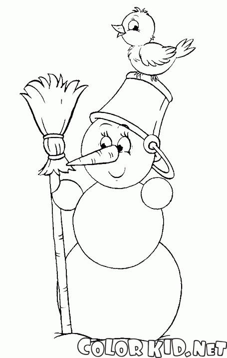 ぬりえ - 雪だるまと鳥