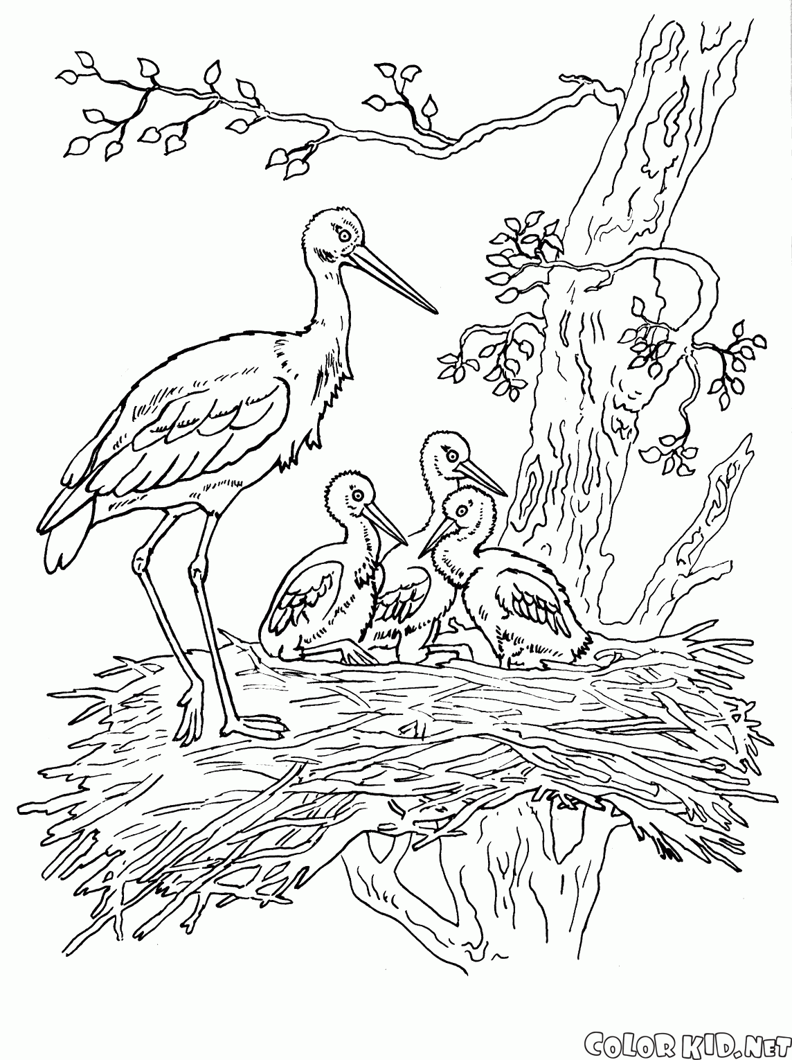 コウノトリと雛