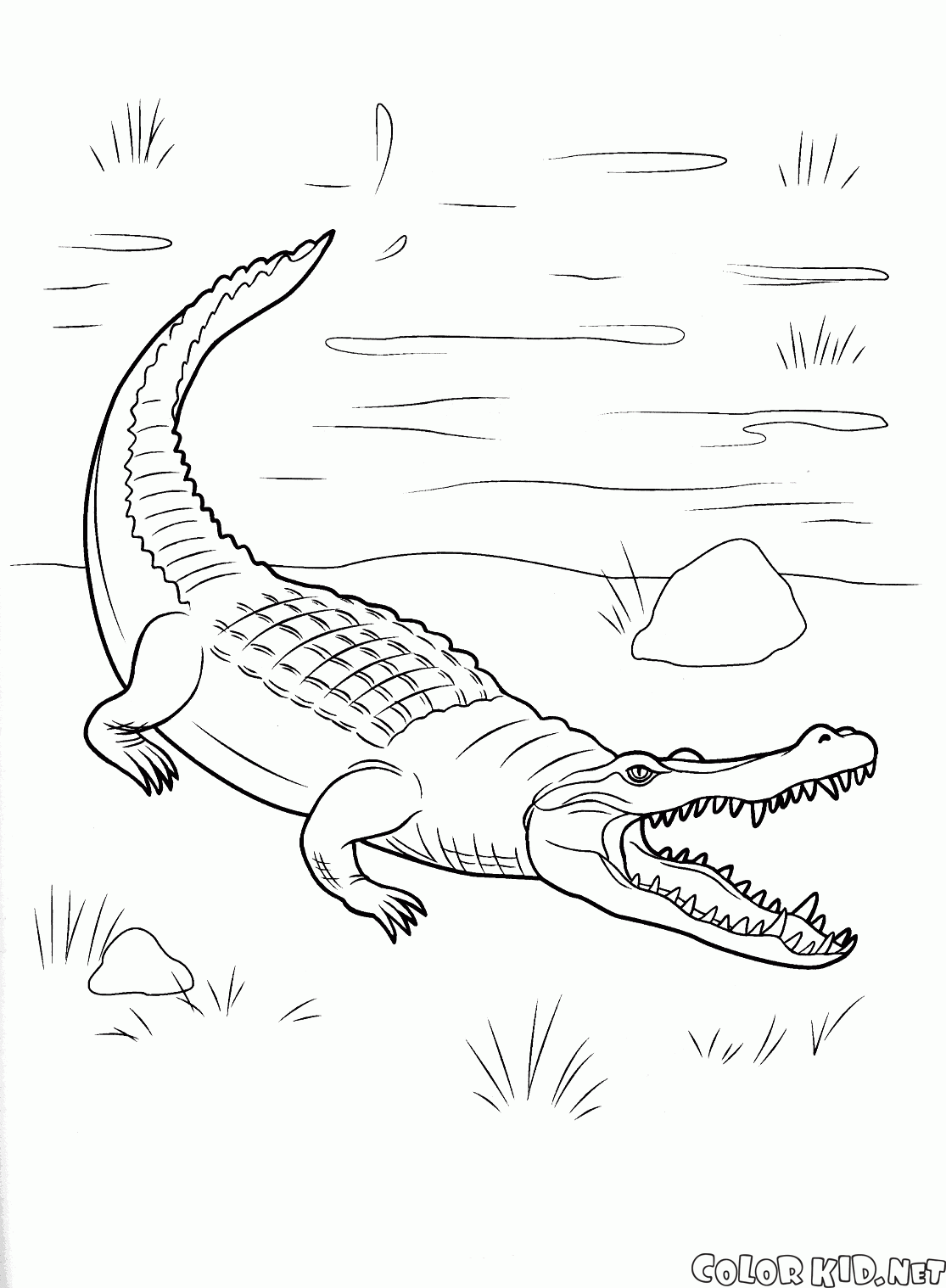 ぬりえ - ワニは陸上来ました