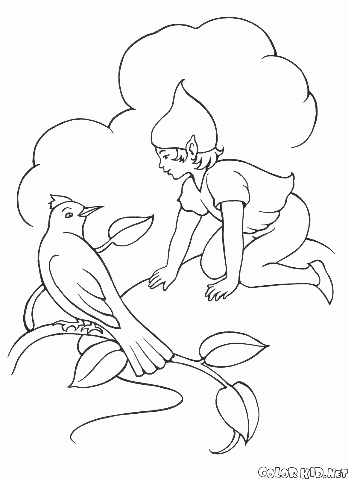 少女エルフと鳥