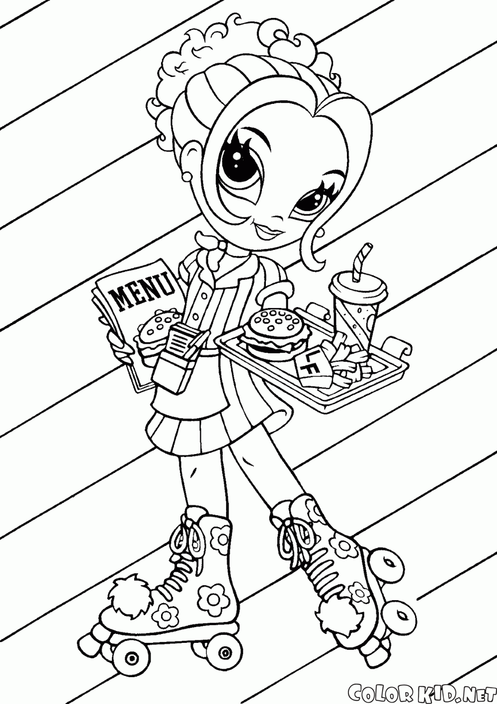 ぬりえ - ローラースケートの女の子