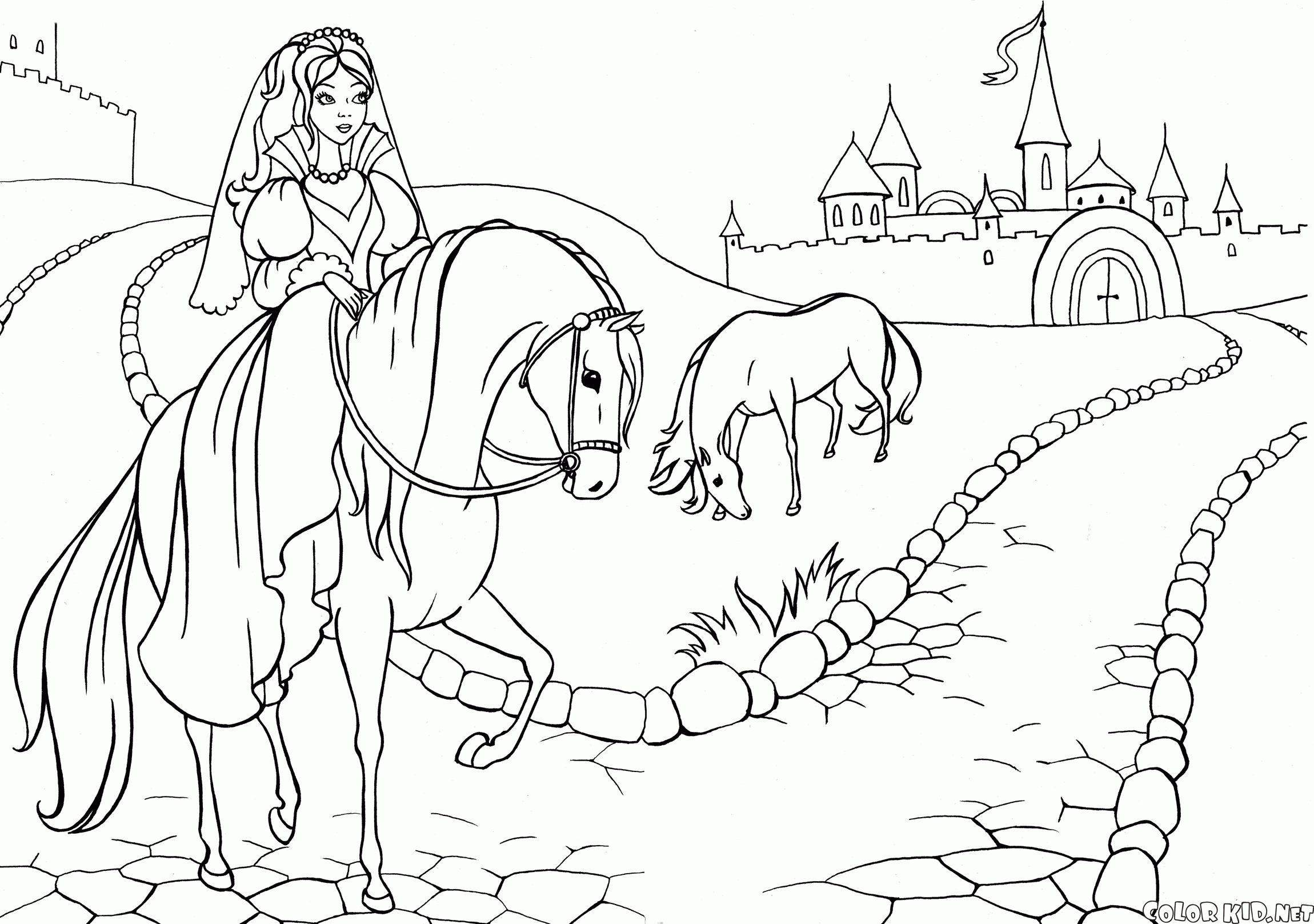 ぬりえ - 城への道で