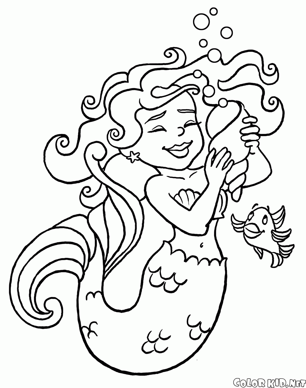 ぬりえ - 巻き貝マーメイド