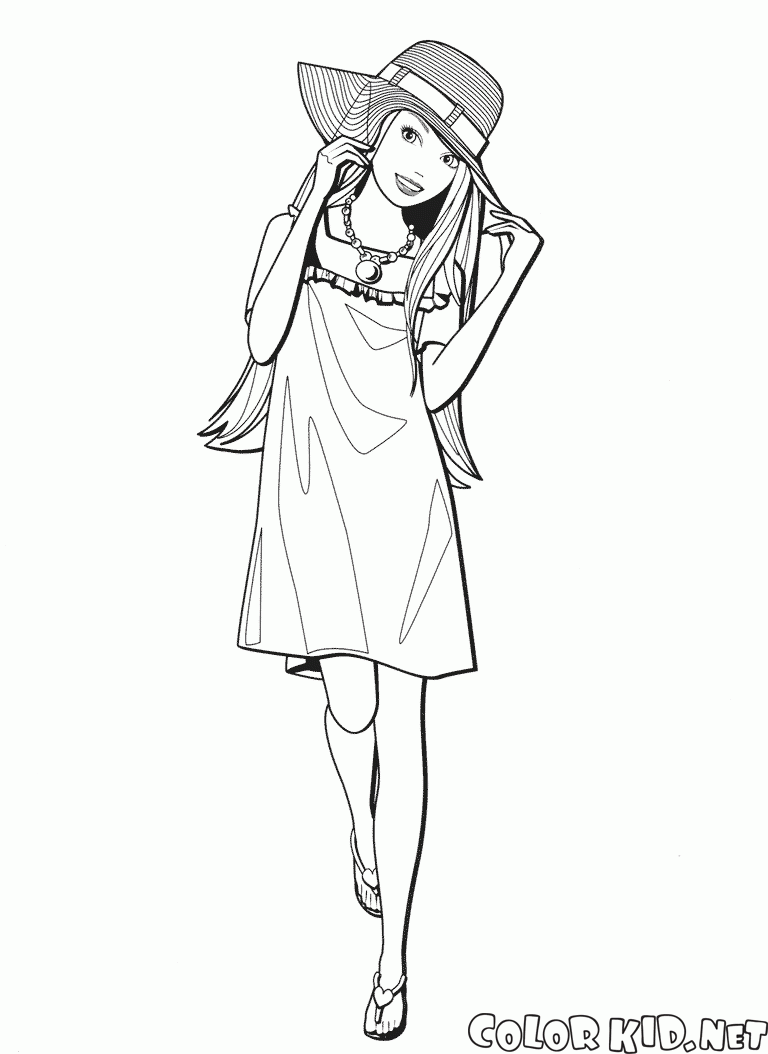 ぬりえ - 帽子とバービー