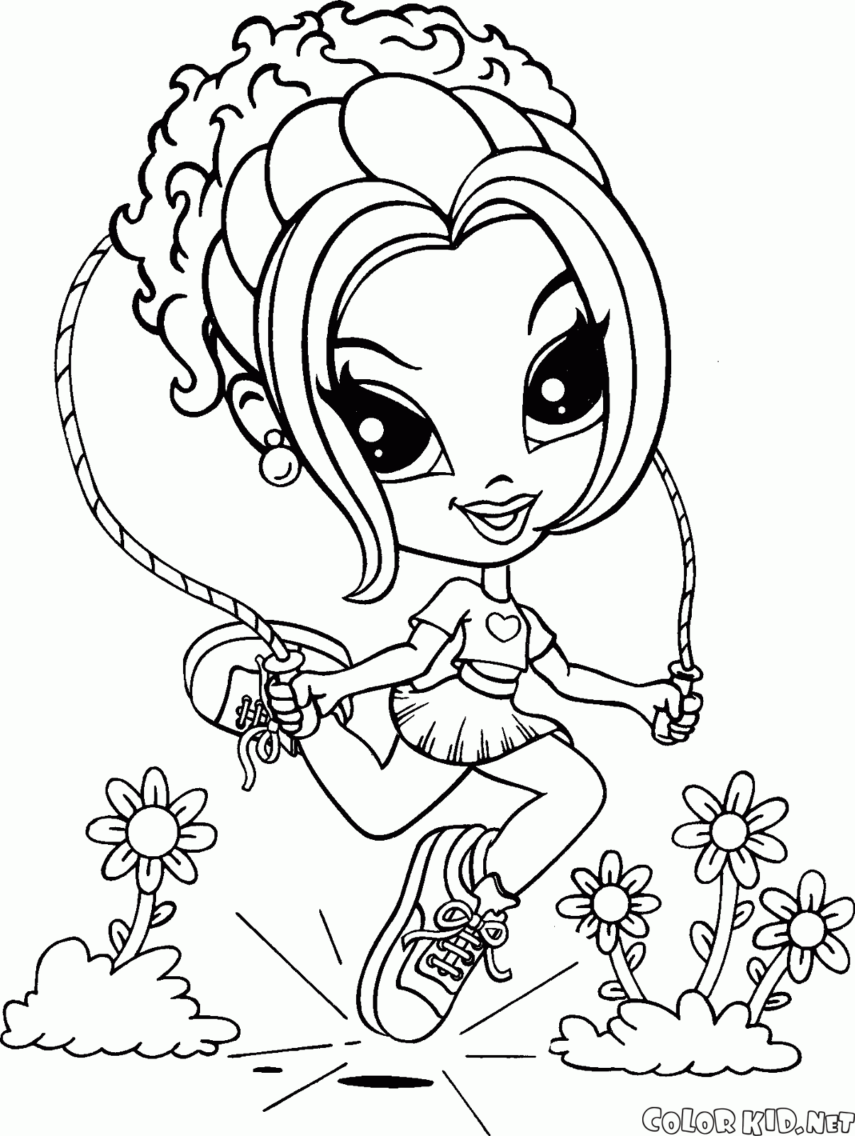 ぬりえ - 縄跳びを持つ少女