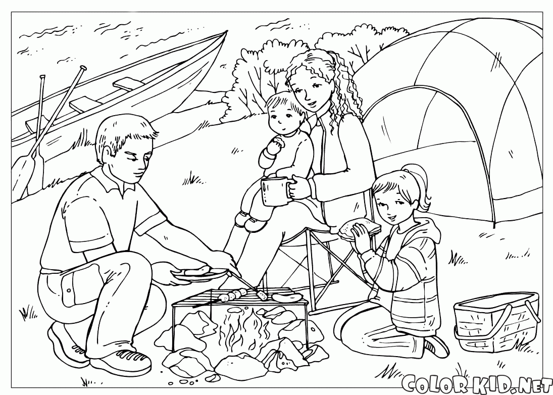 キャンプファイヤーでの家族