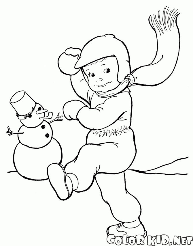 少年は雪だるまをスローします