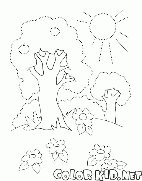 ぬりえ - 夏の木