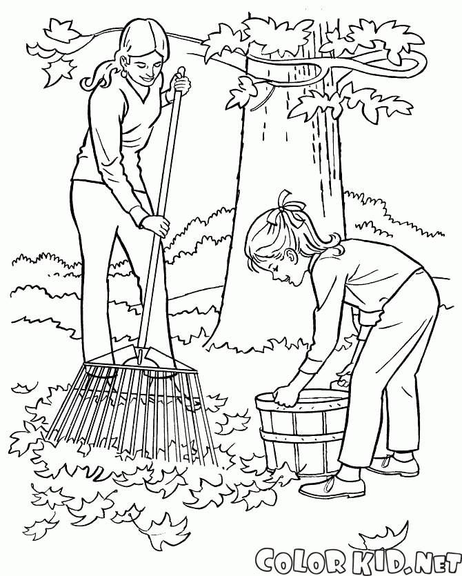 ぬりえ - 落ち葉の清掃