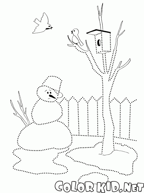 ぬりえ - 雪だるまは、ほとんど溶け