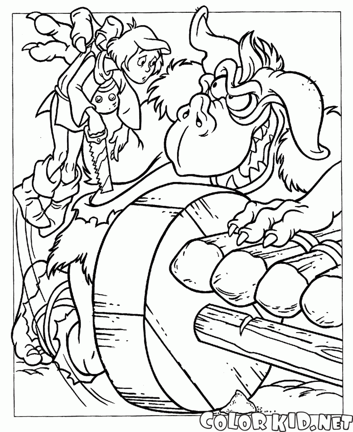 ぬりえ - ゴブリンが少年をつかんだ