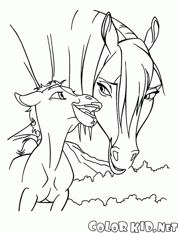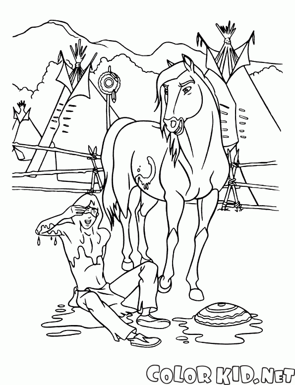 ぬりえ - ネイティブアメリカンと馬