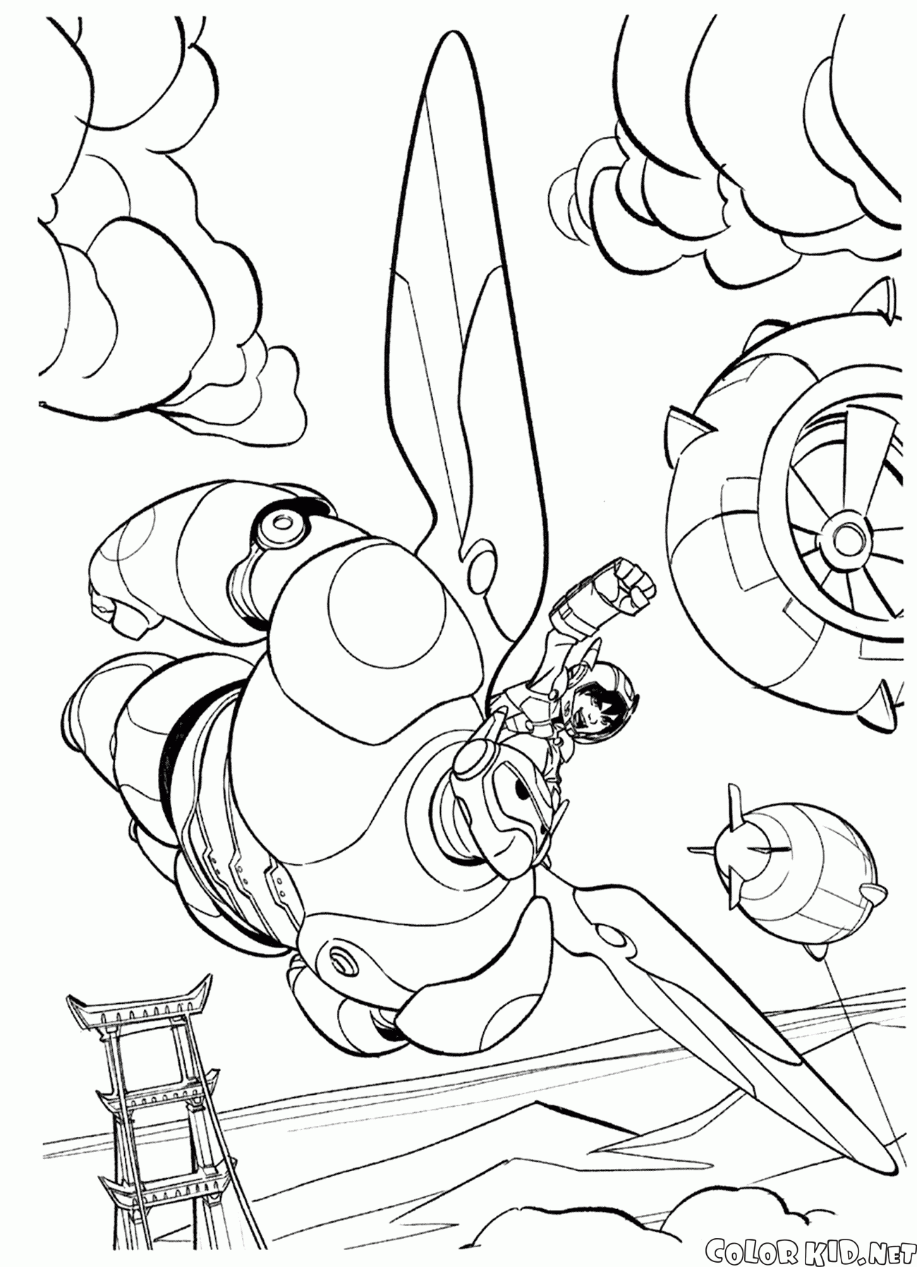 ぬりえ - ヒロとベイマックスが街を救う