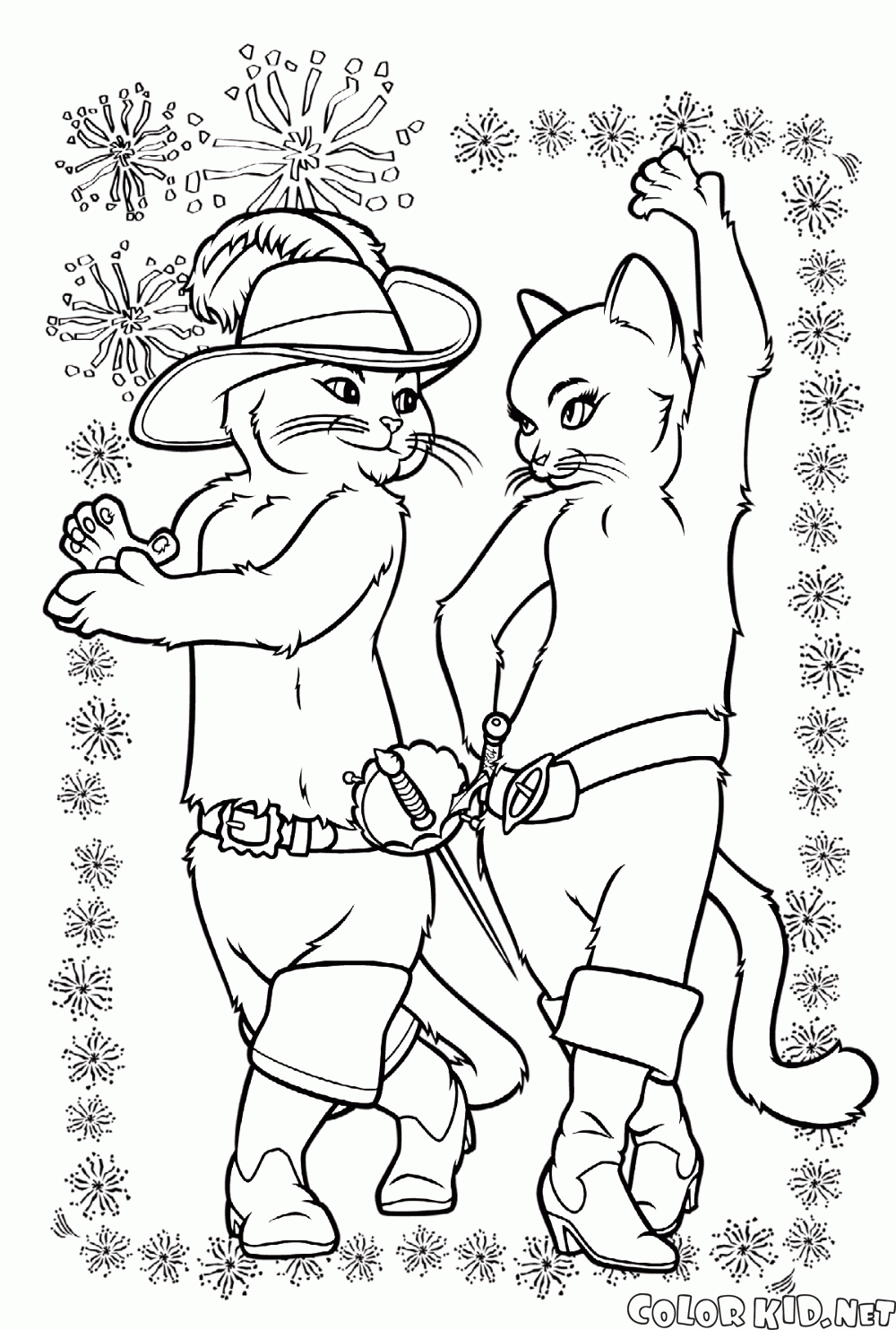 描画には長ぐつをはいたネコのぬりえや他の種類のものがあります。