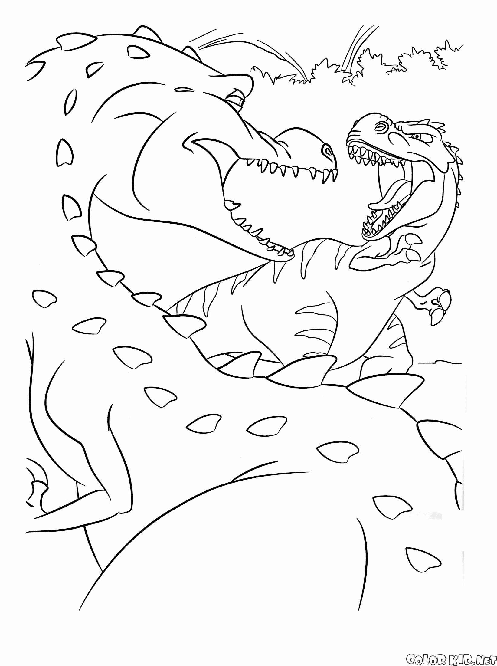 ぬりえ - 怒っている恐竜