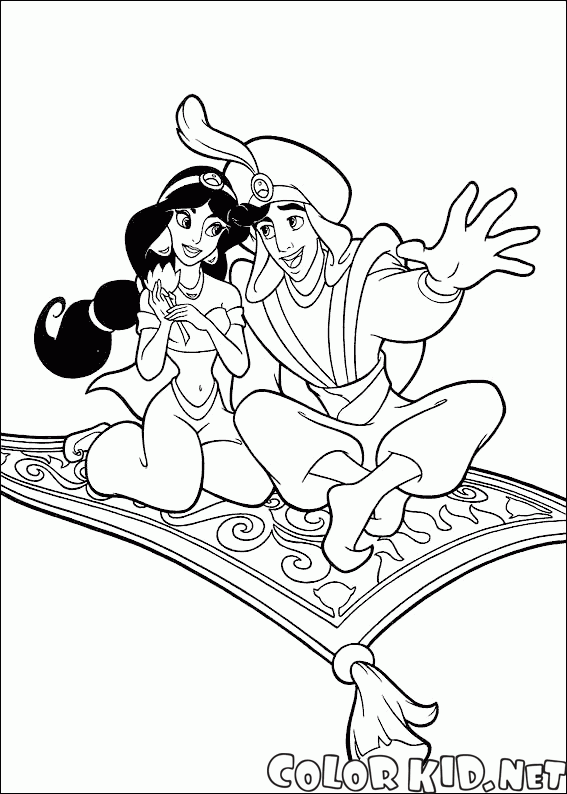 ぬりえ - 旅するアラジンとジャスミン