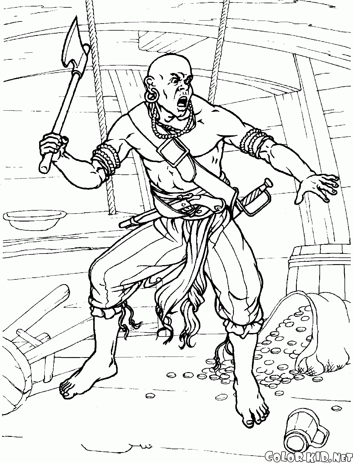 ぬりえ - 斧で海賊