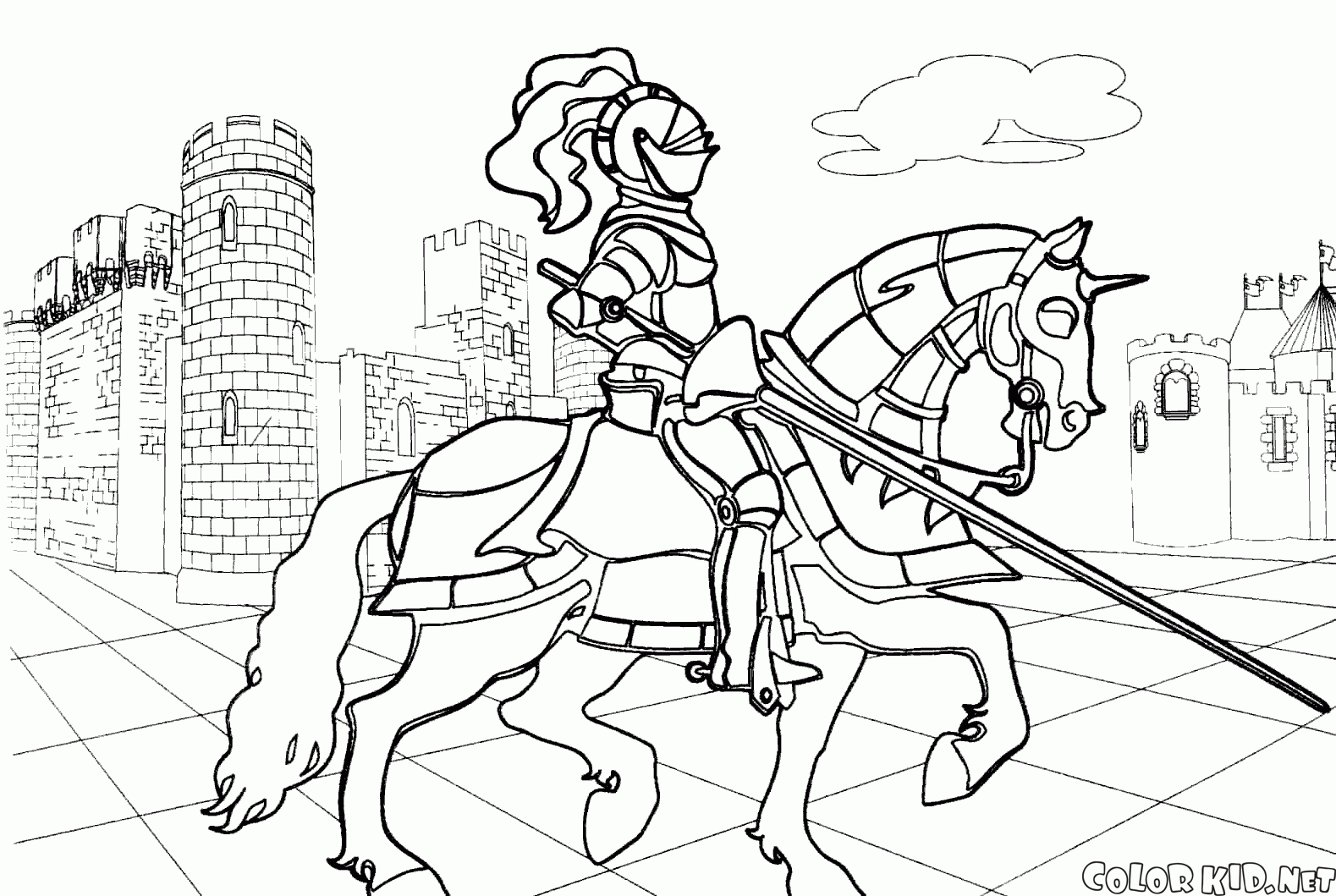 ぬりえ - 武装馬術騎士